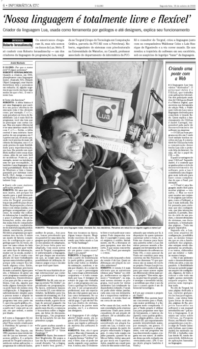 Reprint from O Globo, Ano LXXVI Nº 24519, 16 Out 2000. Copyright © 2000 O Globo. Todos os direitos reservados.